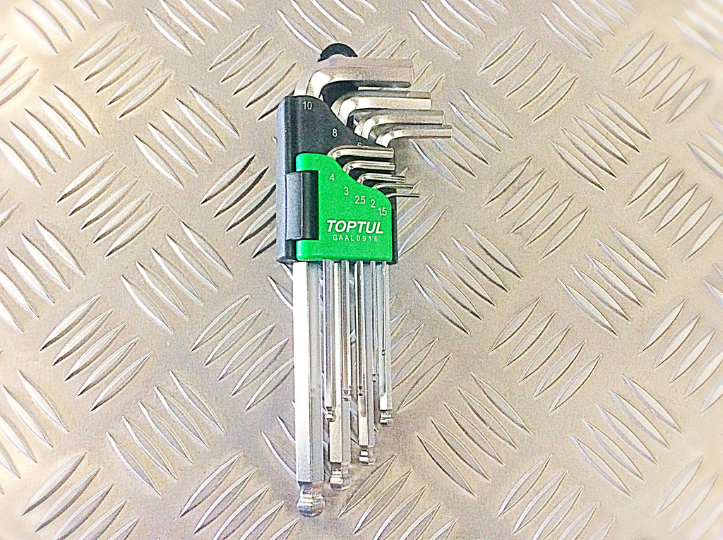 TOPTUL METRIC BALL ENDED ALLEN KEY SET STANDARD LENGTH 9 PIECE SET FROM 1.5mm to 10mm